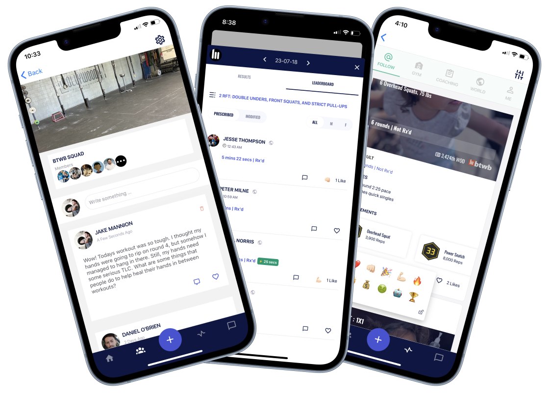 Use your private gym squad to interact with members via message posts, or create custom squads for private groups like coaches, competitors, and more.